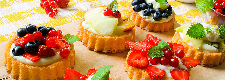 Vielzahl von Torten mit meisterlicher Verzierung.